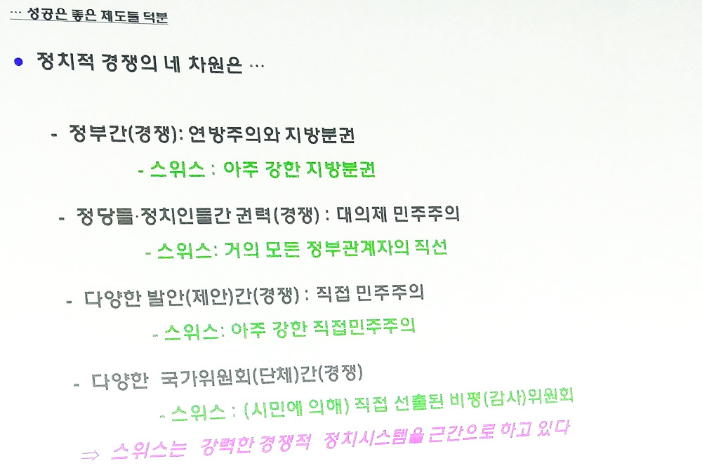 시민 의식 수준이나 문화 수준이 낮은 나라에서 가능하냐고 하지만 관건은 스위스는 제도에 문화가 스며들어가 있어서 가능하므로 제도에 문화가 어떻게 스며들게 만드느냐가 성공의 관건이다.