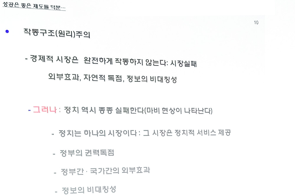 정치는 시장과 비슷한 원리로 작용해서 완전하게 작동하지 않는 경우가 대부분이다.